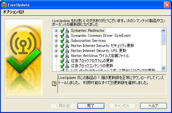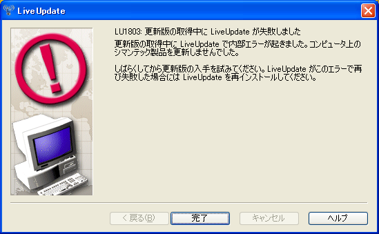 ちょっと前からNorton Internet SecurityのLiveUpdateに失敗するようになってしまいました。
