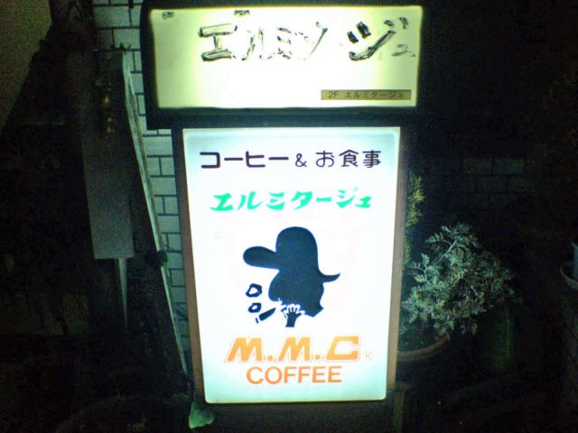夕飯を食べようとM君、SD君とともにかりゆしに行ったところ、なんと臨時休業。欣欣に行くのも何だしな〜と市民球場の方に歩いていくと、エルミタージュという喫茶店を発見。メニューを見ると普通に定食や麺類もあるようなので、ものは試しと入ってみることにしました。