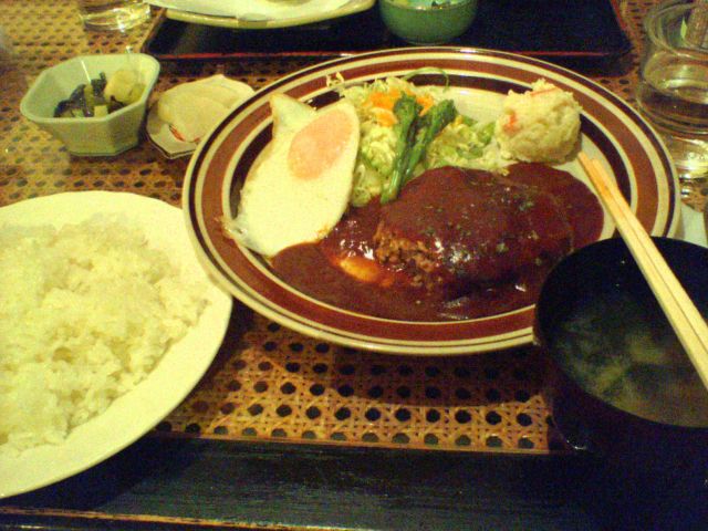 店内はごく普通の喫茶店でした。お客さんは私たちの他に1組しかいません。私は「手造りハンバーグ」のデミグラスソースを注文。味は学食よりは美味しいですし、量も十分。しかし、900円を払う価値があるかと言われると疑問ですね。まぁ、普通に食べられる店ですので、他の店が休みの時にはまた来るかも知れません。