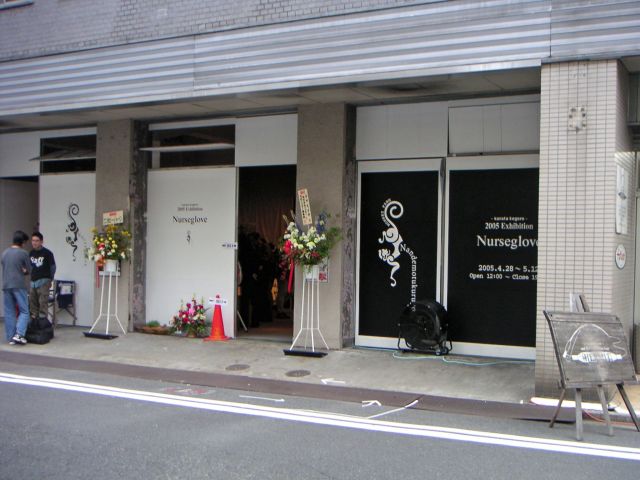 Q社の面接が終わった後、なんでもつくるよさんの個展「Nurseglove」を見に水道橋にやってきました。田町からだと三田線で一本だから楽だな〜と思ってたんですが、三田駅の三田線乗り場って田町駅からすごーく遠いんですね。やられました、浅草線乗り場は近いのに。似たような経験としては、先日高速バスで日立に帰ろうと池袋から丸ノ内線で東京駅に移動した時に八重洲南口までの遠さに嫌になったことがあります。駅名が同じだからといって近いわけではなく、逆に駅名は違うのにすぐ近くで乗り換えできたり、東京はこんなことが沢山です。閑話休題、水道橋駅から会場の特設ギャラリーまでは迷いました。事前にしっかりと調べていなかったために、携帯からサイトにアクセスして住所を調べて、それから駅周辺の地図を見て……なーんてことをやってたらそれっぽい人がいたので着いていったところ、無事にたどり着けました。