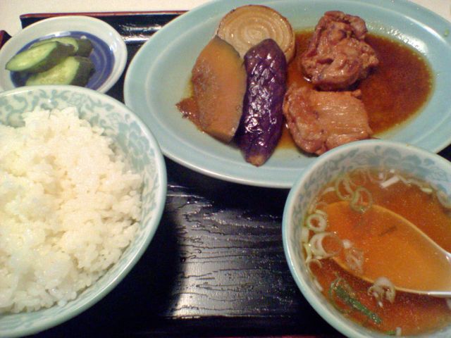 学食で夕飯を食べ損ねてしまったので、M君と一緒に4ヶ月振りに欣欣に行ってみました。表に出ている看板を見ると今日のお勧めは、Aが「カツカレーと小ラーメン」、Bが「とり照焼風定食」となっていたので、何の気なしで安いBを選択(ちなみにAが850円でBが500円)。しかし、これが大失敗。出てきたものはどう見ても煮物で、食べてみてもやっぱり煮物。決して不味いわけではないんですが裏切られた気持ちで一杯です。学食で裏切られるのは慣れているけれど、外食してまで裏切られるのは勘弁して欲しい。