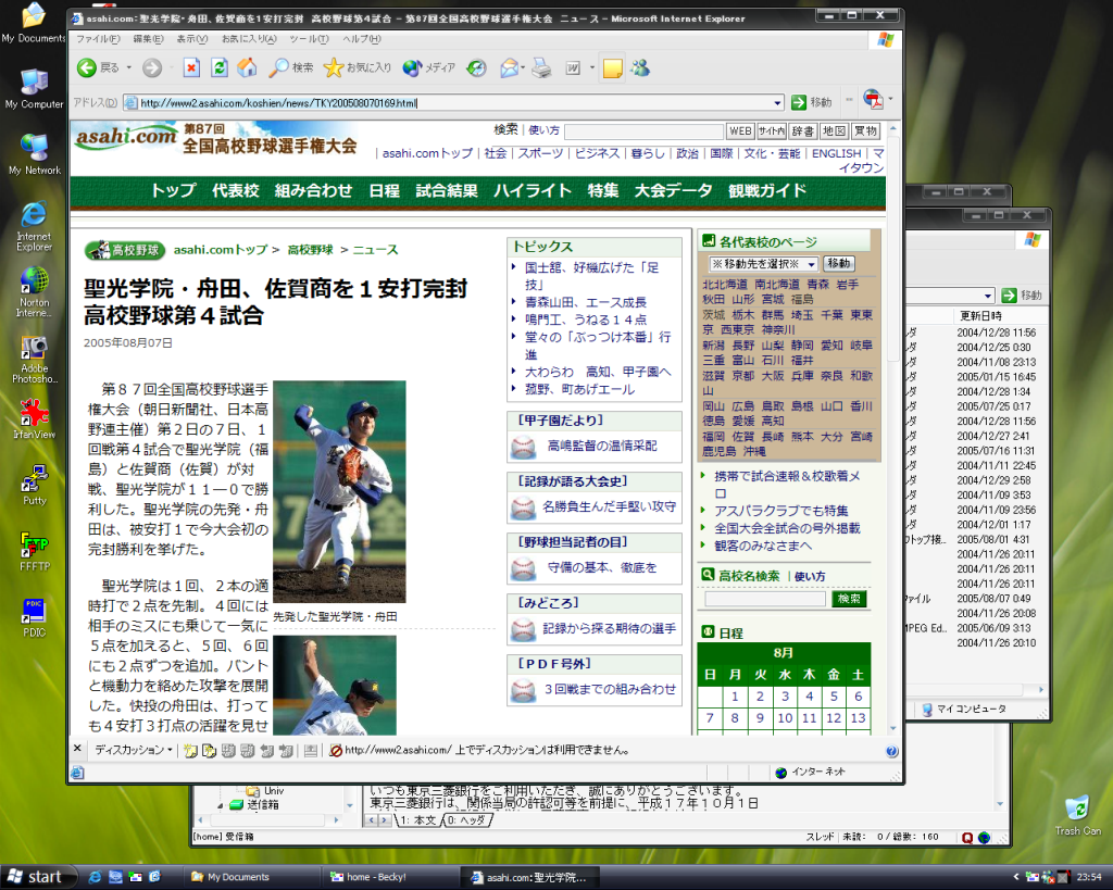 これがカスタマイズ後のスクリーンショット。元々私はXP標準のLunaの配色が嫌いだったのですが(緑のスタートボタンが最悪)、これはなかなかいいかも。これまでよりも締まった感じがして好みです。
