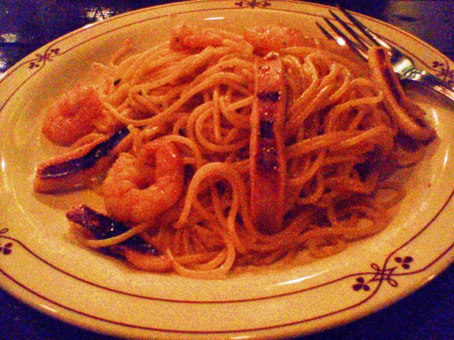 メニューにはパスタ、ピザ、グラタン、サラダ等が並んでいて、メインはパスタ。「エビとイカのペペロンチーノ」を頼んでみましたが、味がちょっと濃いめなものの普通に美味しい。サラダも付いて880円という値段は妥当なところですかね。できれば安いランチメニューを設定して欲しいところです。