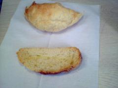 夕方、小腹が空いたな〜と思っていたら、M君がプリメーロにメロンパンを買いに行くというので私の分も買ってきて貰いました。今回は通常のメロンパン(120円)に加え、マンゴーメロンパン(180円)というのを購入。マンゴーにメロンって、おまえはいったい何なんだーという気もしますが、これが思いの外美味しい。パンの中にはマンゴージャムが入っていて、メロンパンの甘みとジャムの酸味が絶妙。これは是非また買わなければ。