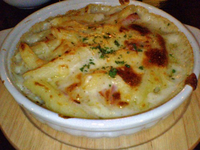 夕飯はM君、SD君と一緒にダルマカフェです。前2回はパスタを食べたので、今回はちょっと趣向を変えてグラタンにしてみました。ベーコングラタン、860円(だったかな?)。ちょっと辛めの味付けが好みです。意外と量も多くて満足満足。