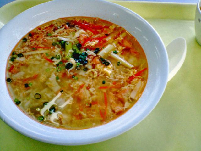 こちらが2つに割ったところ。味はまあまあなんですが、肝心の鶏団子が1つしか入ってないのはどうかと思います。